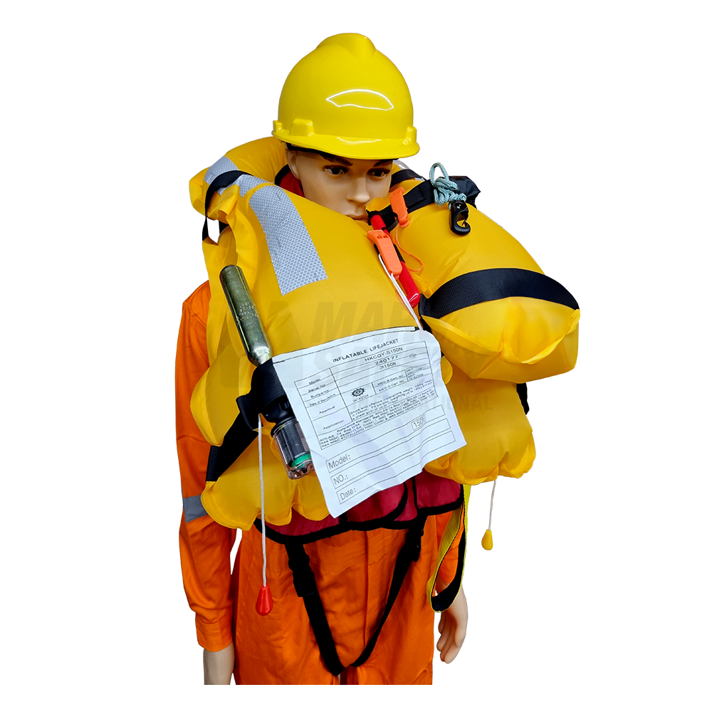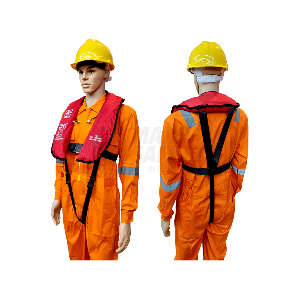 - MED/SOLAS approved offshore inflatable life jacket with double chamber system, designed to offer superior safety by ensuring that even if one chamber fails, the life jacket can still perform its life-saving function.
