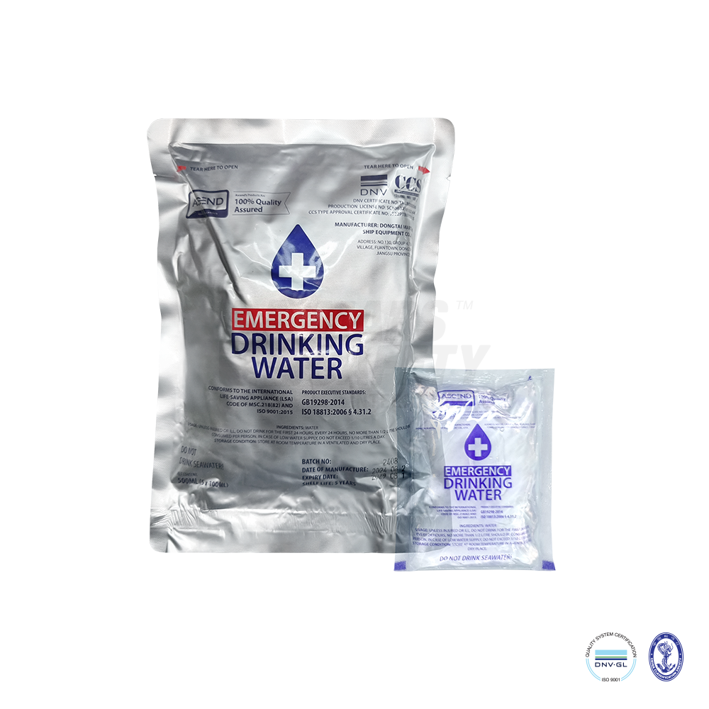 - SOLAS approved emergency drinking water ideal for survival crafts.
