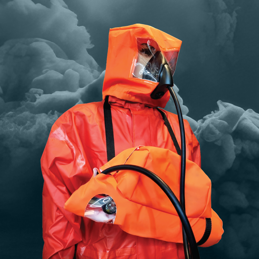 - Comes in Hi-Vis orange for high visibility in smoke filled environment.
