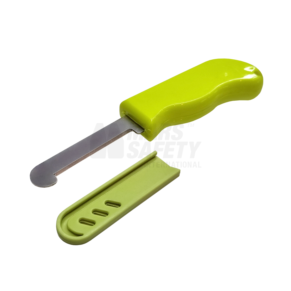 Specialized, floating cutting tool designed for maritime emergency use, particularly around inflatable life-saving equipment and during water-based activities.